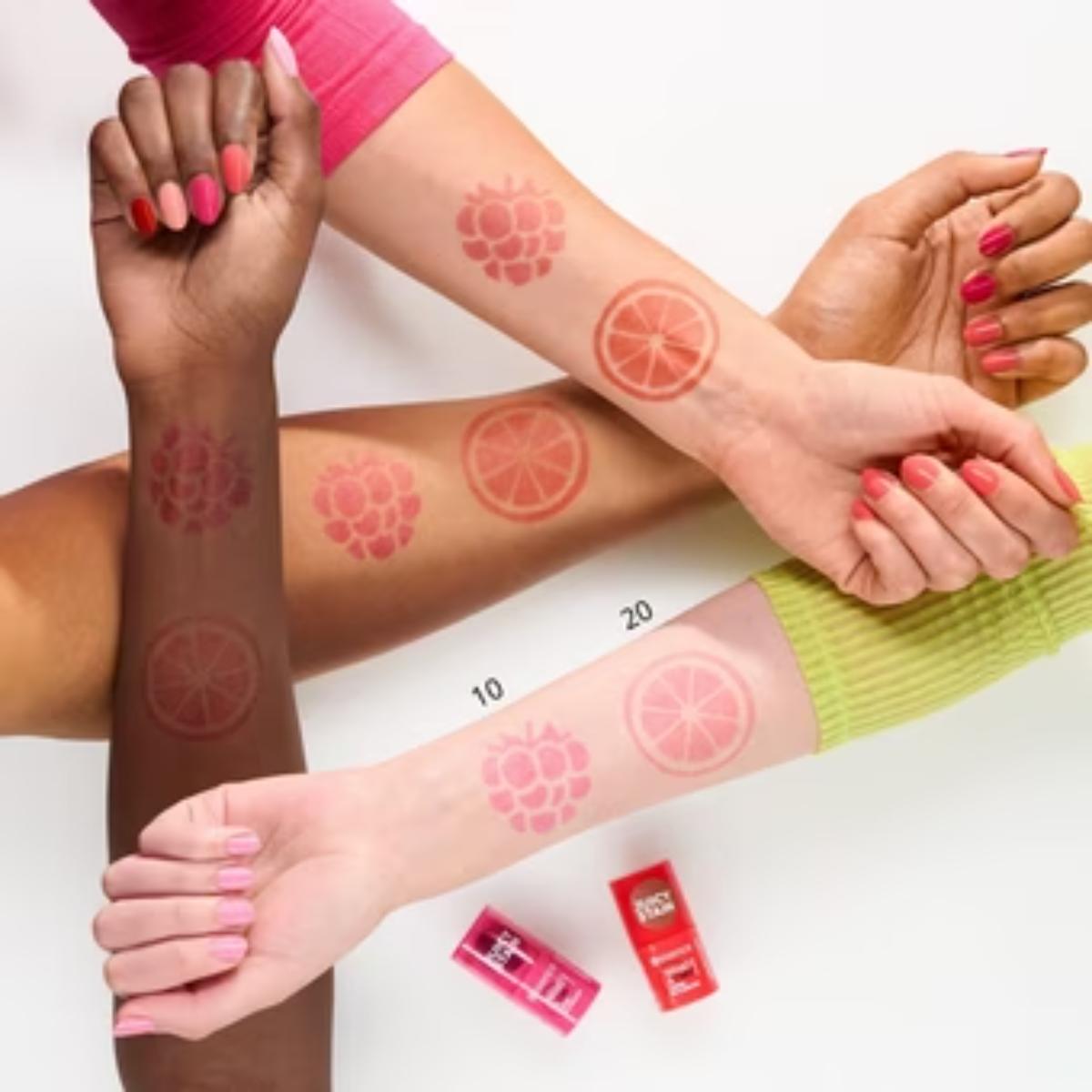 Glide the stick directly over lips and cheeks for an instant pop of juicy colour or pick up the tint with a buffer brush.